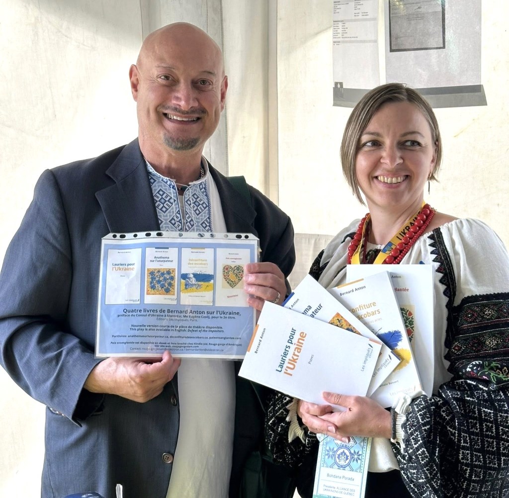 Avant Paix ensanglantée, Bernard Anton a publié trois ouvrages consacrés à l’Ukraine. Ses haïkus sont saisissants, alliant solidarité et espoir. Ses écrits dénoncent l’invasion tout en offrant des images poignantes et porteuses d’émotion. Sa pièce de théâtre Déconfiture des escobars poursuit aussi un engagement artistique et humaniste en faveur d’une paix juste et équitable.